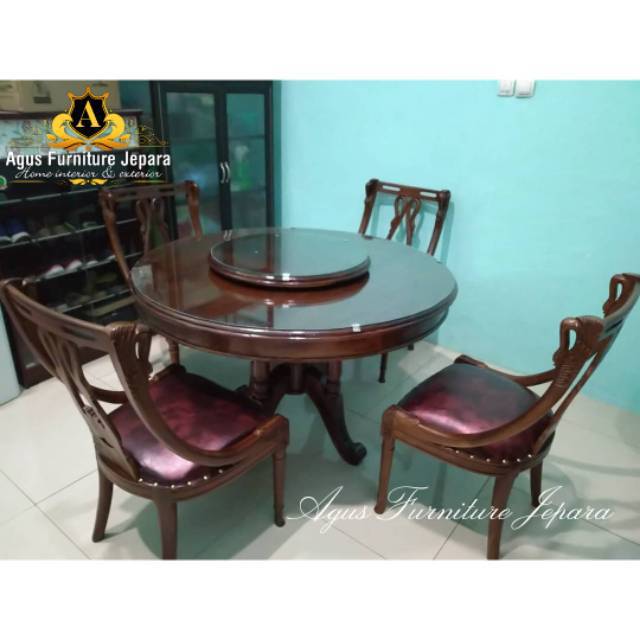 Griya furnindo pusat belanja furniture jepara melayani grosir maupun eceran menyediakan stock mentahan unfinishing. Jual set meja makan kaca double circle bisa putar dengan 6 kursi makan dengan harga rp1 950 000 dari toko online chavihome kota surabaya. Produk meja makan putar jepara sengaja kami buat untuk memenuhi kebutuhan ruang makan para kosumen kami meja makan ini kami desain sendiri dan kami buat sendiri dengan kualitas terbaik dan harga terjangkau. Salah satunya yaitu meja makan bundar 4 kursi kaca davina yang mana dengan model dan desain yang minimalis dan klasik.