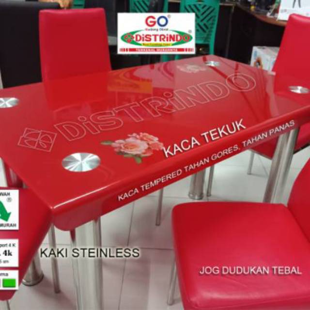 Meja makan kaca warna merah. Ukuran dimensi dari meja makan kaca bulat ini adalah 99 x 99 x 0 8 cm p x l x t dengan pilihan warna biru dan merah. Dengan bahan dasar aluminium dan dihias dengan kaca meja makan alumunium akan terlihat mewah. Meja makan warna warni jepara. Meja makan flora 4 kursi.