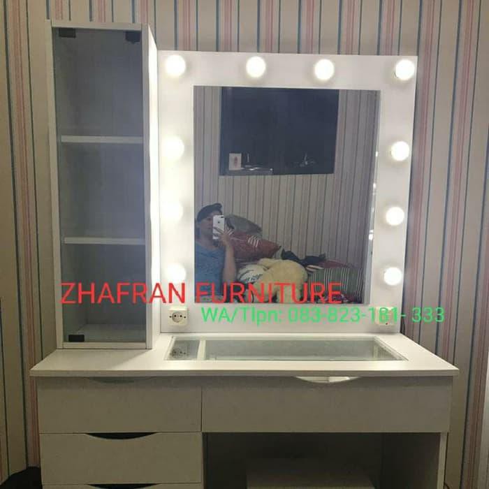 Anti rayap 3. Jual meja kursi minimalis unik modern informa official cicilan 0 free ongkir garansi jaminan pengiriman. Meja rias dengan lampu di kaca adalah model yang sering sekali di gunakan saat ini. Blockboard 18 mm 12 mm 9 mm finishing.
